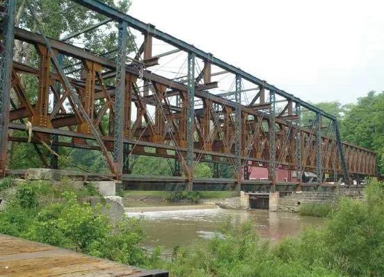 這座印第安工廠橋最初建于1913年,跨度為177ft.(約53m),單車道,采用雙腹材普拉特下承式桁架。橋梁性能日漸退化,直到它引起了懷安多特縣的工程師Michael B. Kohl的注意。鑒于這座橋梁的特殊位置,Kohl啟動了一個項目來考察如何對該橋梁結(jié)構進行保護。俄亥俄州曼斯菲爾德的一家土木/結(jié)構公司——Richland工程有限公司被選中進行修復方案的制訂,并最終給出了橋梁的修復方案。